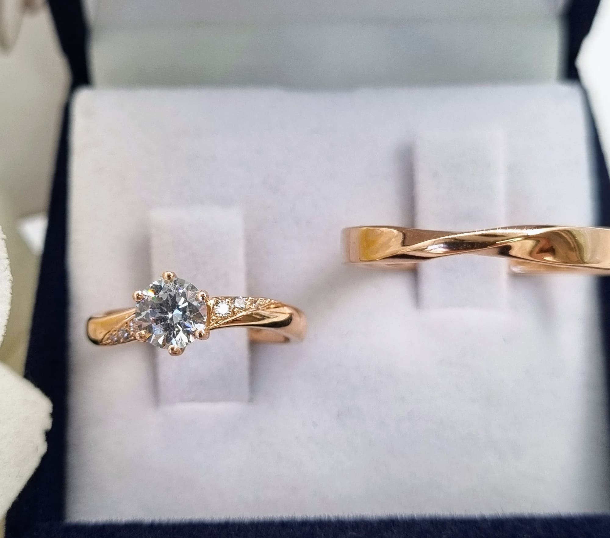 Diseño infinito en ambos anillos, uno de ellos con gema corte brillante