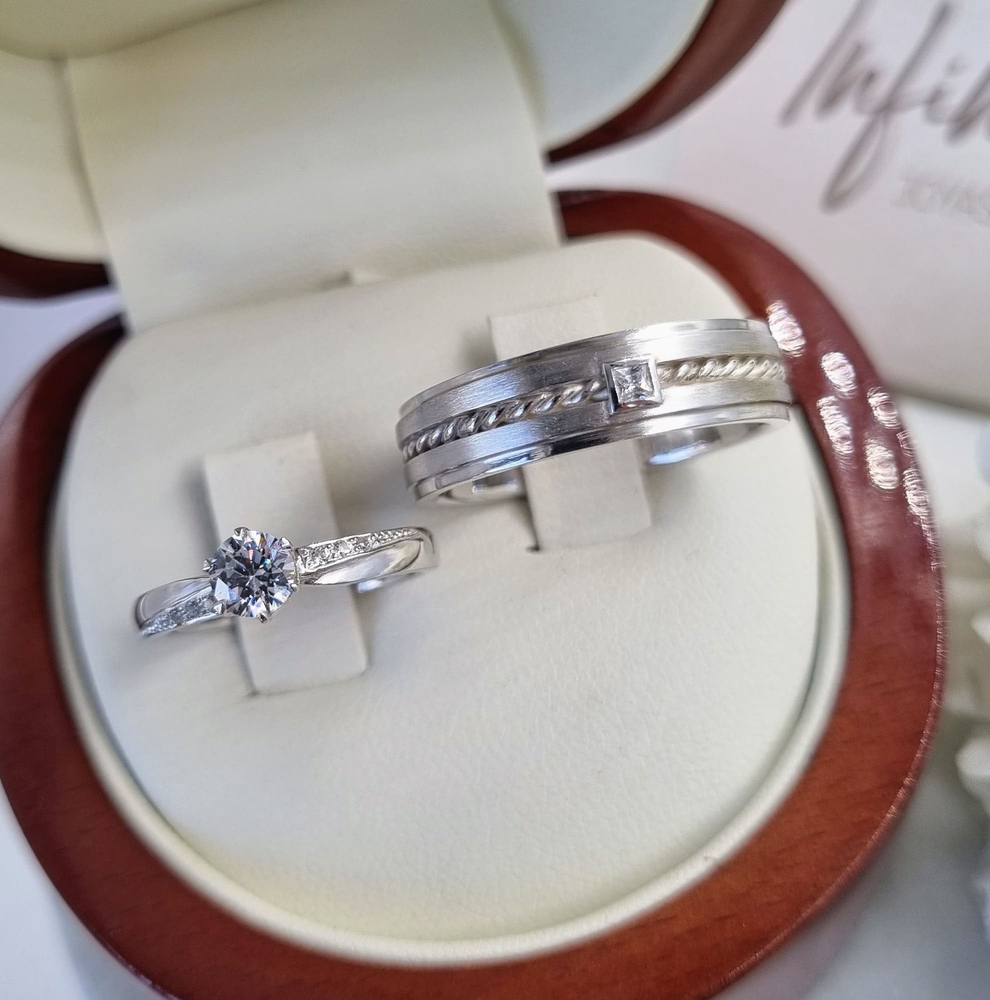 Queremos agradecer a joyas infinitas por ser parte de gran momento, sin lugar a dudas cuentan con un servicio de calidad y calidez , entendieron muy bien nuestra propuesta y lograron captar 100% nuestra idea haciendo de ellos nuestras argollas una de las piezas más bonitas de nuestra unión.