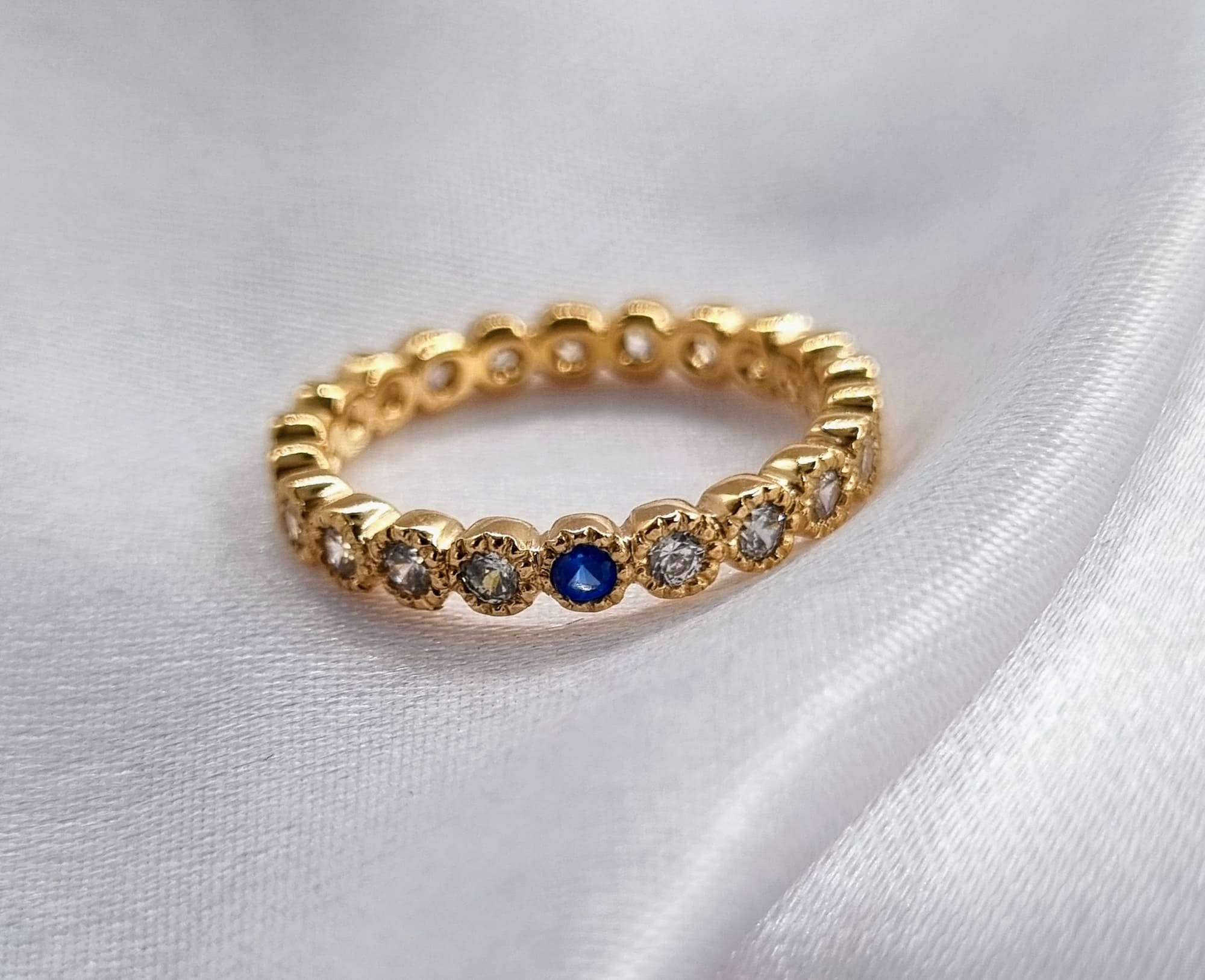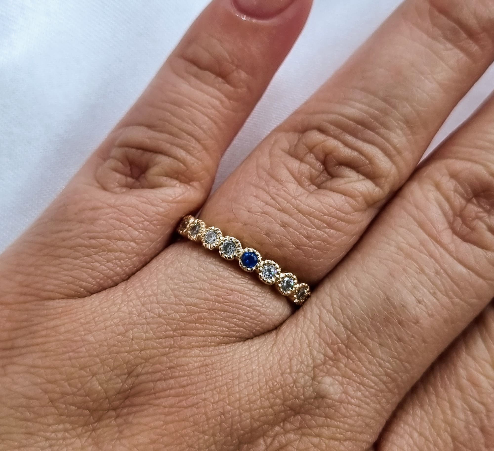 Anillo sinfín de gemas con una central de color representativo para quien lo recibe
