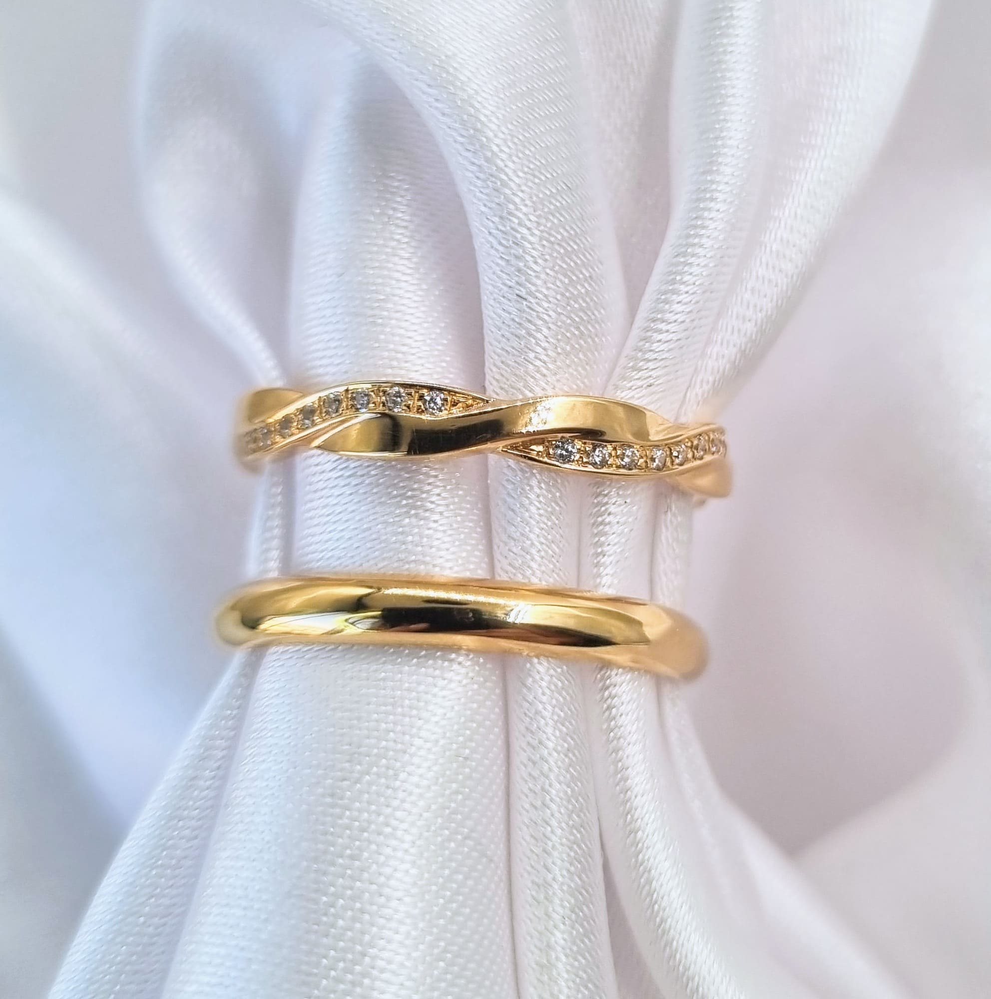 Delicado diseño enlazado, con gemas brillantes y argolla tradicional cuerpo inglés