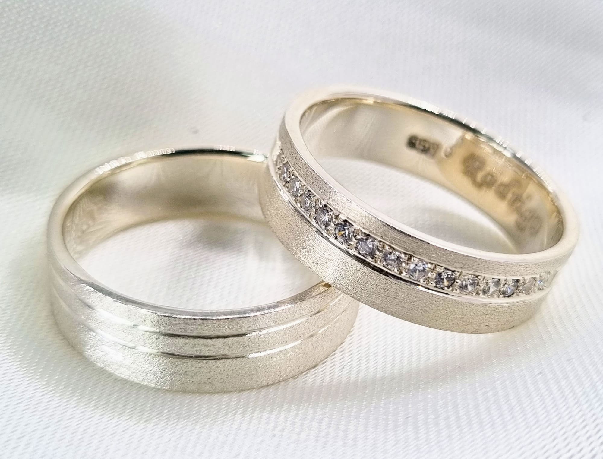 100% recomendable, rápida atención te acompañan en la decisión y el resultado vale la pena totalmente lo único que al ser un anillo más ancho me recomendaron una talla más y nos quedó grande a ambos. Pero lo arreglaron sin costo adicional.