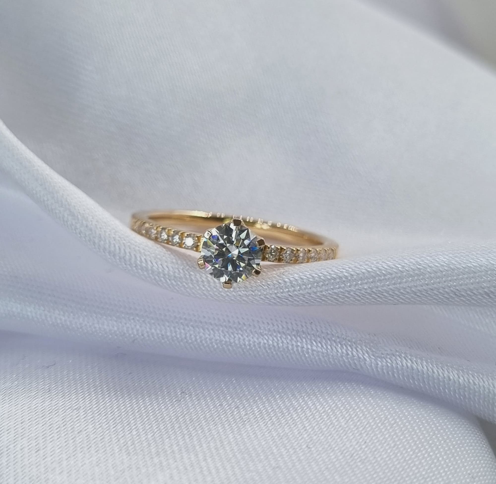 Solitario 6 grifas con engaste lateral francés para resaltar el brillo de las gemas