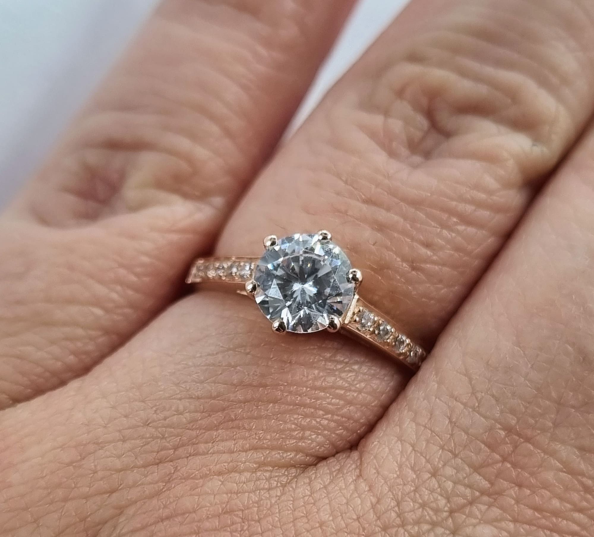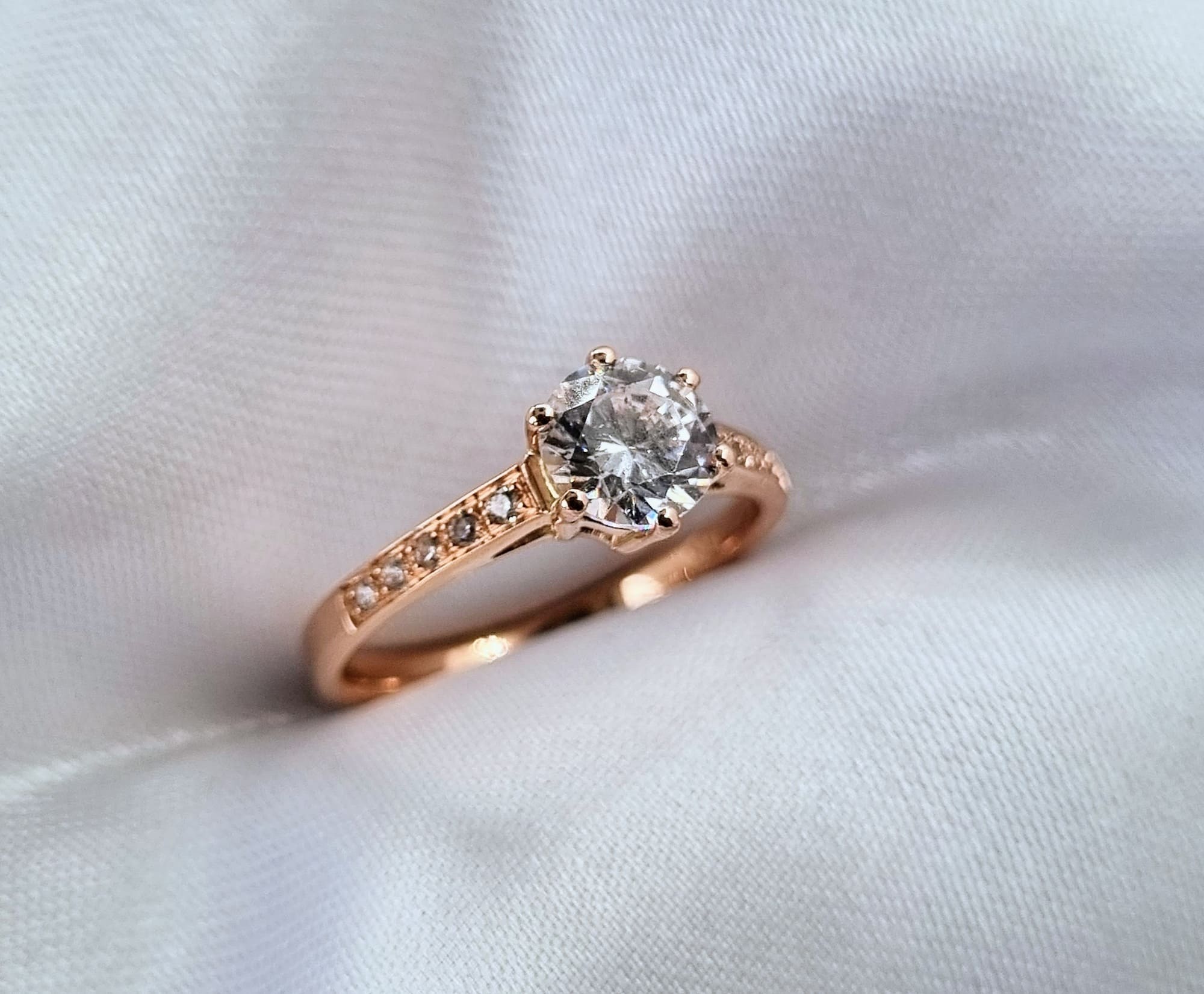 Nuestro hermoso anillo Infinita: solitario de 6 grifas y cintillo lateral. Preciosas gemas corte brillante
