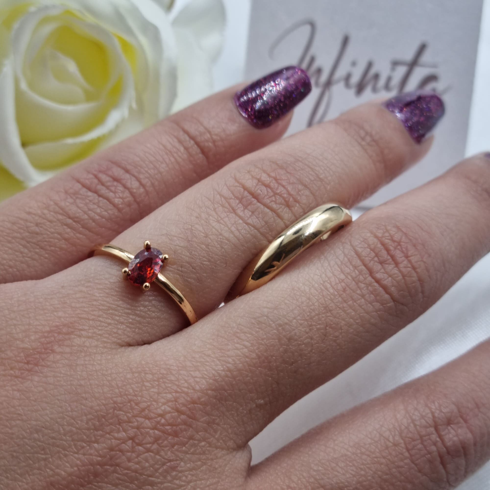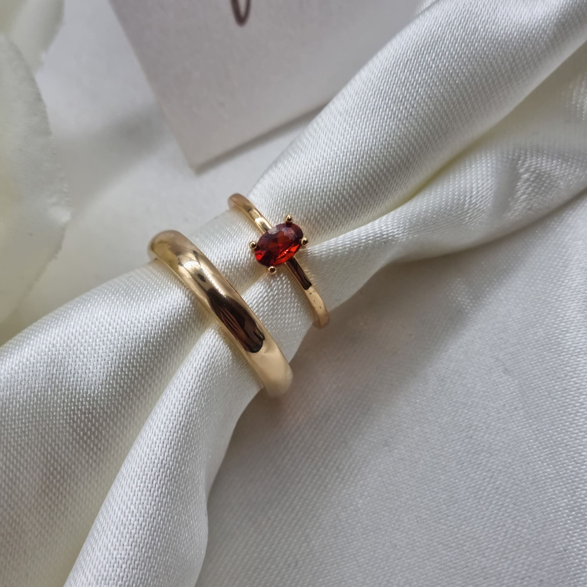 Delicada gema color rojo con argolla lisa