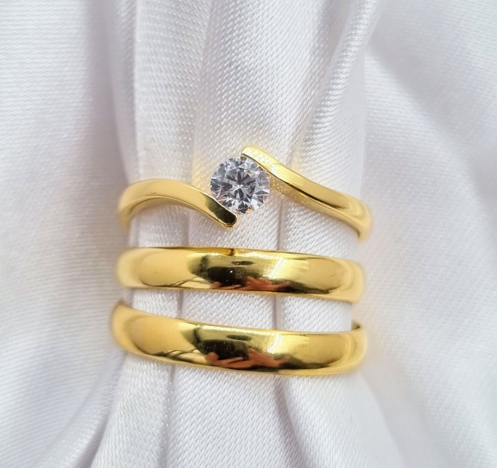 100% recomendable, rápida atención te acompañan en la decisión y el resultado vale la pena totalmente lo único que al ser un anillo más ancho me recomendaron una talla más y nos quedó grande a ambos. Pero lo arreglaron sin costo adicional.