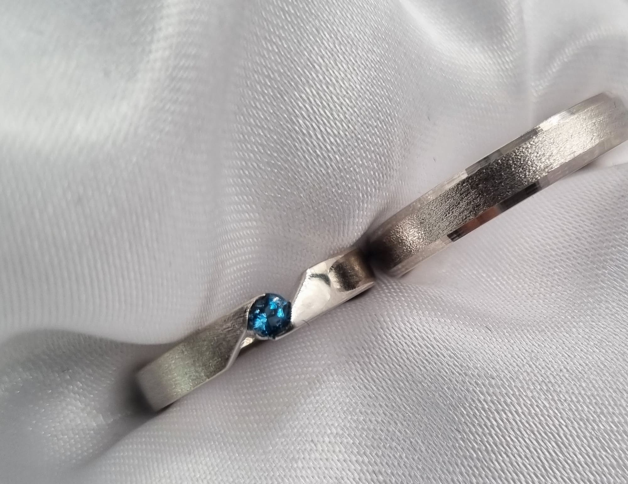 Argollas base cinta con textura satinada y corte en diagonal con brillante topacio flotante.